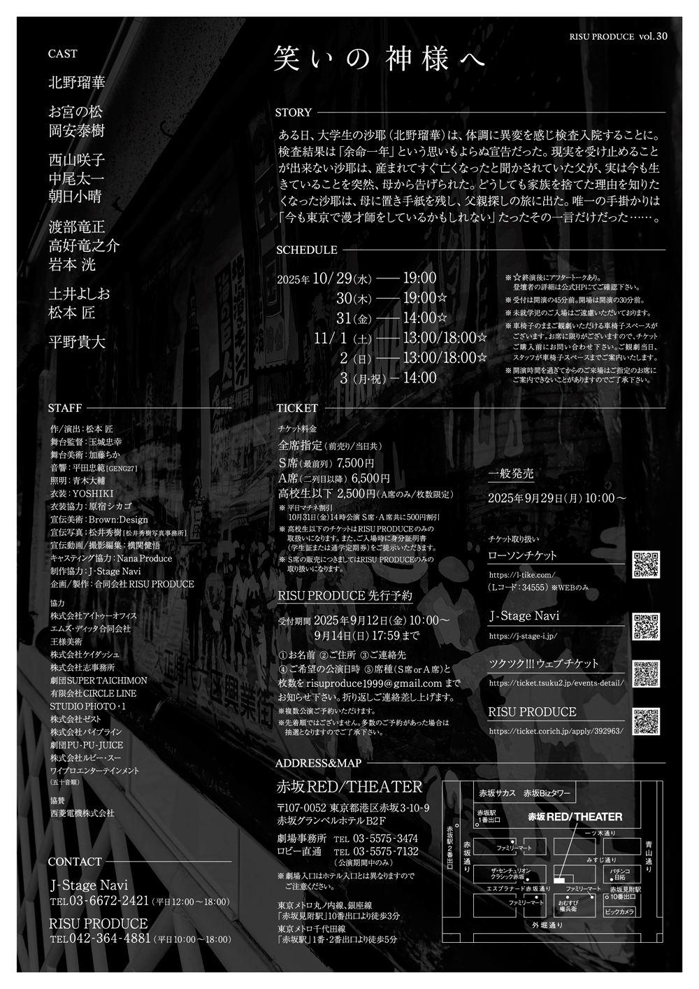 【渡部竜正 舞台出演】 「笑いの神様へ」 RISU PRODUCE vol.30 2025.10月29日(水)〜11月3日(月祝) 劇場 赤阪RED/THEATER 漫才コンビ:クイックターン・伸一役